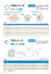 9 Tricolour TRRシリーズ 1方向送り TRIシリーズ 揺動+直動 ラチェット内蔵 直動シリンダ内蔵 1V、2V用 寸法表 寸法表 注(1)ストロークは最大100oです。 (2)〔 〕内の数値は容量を示します。 ※aポート加圧で矢印方向に揺動します。 ※cポート加圧で矢印方向に直動します。 ラチェットの分割は、2,3,4,5,6,8,9,10,12 の各種があり、仕様に合せて逆回転も設 計製作しております。 このタイプは一方向回転ですから各種装 置のワンピッチ送りなどに適しています。 揺動シリンダの中に直動シリンダを内蔵し たコンパクトタイプです。揺動と直動は、そ れぞれ同時および別作動が可能です。 型式揺動角度A B C D1 D2 D3 D4 E1 E2 F1 F2 H L L1 L2 L3 L4 P G S1 S2 S3 S4 S5 T d PT TRR- 6 1V-270° 125 90 60 35 16 20 90 5 7 18 31 75.5 159 24 36 84 15 108 14 2 20 28 23 12 18 9 RC 2V- 90° 1/4 TRR-12 1V-270° 138 105 70 40 18 20 102 5 7 20 36 82 169 25 40 89 15 120 14 3 20 28 28 12 18 9 RC 2V- 90° 1/4 TRR-20 1V-270° 138 100 70 40 20 20 102 5 7 22 36 99.5 199 25 45 114 15 120 14 3 20 28 29 12 18 9 RC 2V- 90° 1/4 TRR-50 1V-270° 175 135 85 58 30 30 130 7 10 33 53.5 116 233 28 52 133 20 155 21 3 22 32 34 15 20 11 RC 2V- 90° 3/8 TRR-80 1V-270° 190 140 90 60 35 35 140 10 10 38.5 55.5 134 263 30 60 153 20 165 26 3 25 35 39 15 20 14 RC 2V- 90° 3/8 型式最大 揺動角度α A B C1 C2 D D1 D2 E F G1 G2 H J K L M N P Q S1 S2 S3 S4 T d PT 圧力 1 M P a における トルク 圧力1MPa における推力最高使用 圧力押出し側引込み側 TRI- 6X (ストローク) 1V-270° 150 132 117 85 50 M10 P=1.5 16 5 13 70 173.5+ストローク+ (ストローク-16.5) 49 34.5 38.5 70+G2 60 4 122 18 25 32 30 36 18 9 1/4 6N・m 450N 250N 3MPa TRI-20X (ストローク) 1V-270° 185 164 142 100 60 M12 P=1.75 22 7 18 80 196+ストローク+ (ストローク-21.5) 59 37 47 80+G2 70 4 143 20 30 38 35 41 20 11 1/4 20N・m 900N 500N 4MPa TRI-60X (ストローク) 1V-270° 235 210 182 132 75 M16 P=2 32 10 27.5 95 257+ストローク+ (ストローク-65.5) 70 60 72 95+G2 90 5 202 22 30 45 40 50 25 14 3/8 60N・m 1700N 1200N 5MPa TRI-100X (ストローク) 1V-270° 240 215 187 132 75 M16 P=2 35 10 30.5 95 279+ストローク+ (ストローク-85.5) 72 60 92 95+G2 90 5 224 22 30 45 40 50 28 14 3/8 100N・m 1700N 1200N 5MPa 注(1)出力トルクはTシリーズと同じです。5ページの仕様表を参照して下さい。 (2)2分割(180°)、3分割(120°)の場合には1V- 270°を使用します。 (3)4分割(90°)以上の場合には2V-90°を使用します。 .本図は左回転を表します。 .逆回転の場合はY-Y軸に対称となります。 ※aポート加圧で矢印方向に揺動します。 L3 S3 5 S2 S1 S4 11 S5 L4 L2 L1 L H T φD3h9 φD2H7 φD1h7 φD4H7 φB φA φC G 2〜PT b ポート F EN9 4〜φd キリ a ポート c ポート d ポート φB 20° 360°-α° Y Y E1N9 EN9 4〜φd a ポート b ポート 30° 45° 30° φP F2 F1 aポート 4〜PT PT1/4 穴付フラグ d ポート b ポート ストローク c ポート S1 S2 S3 S4 T G1 G2 P H J K Q N L φD2h7 φD1 φMh9 φA φC1 φD φC2 25 Y Y E2N9 E1N9 4〜φd a ポート b ポート 30° 45° 30° φP F2 F1 1V用2V用 | |
